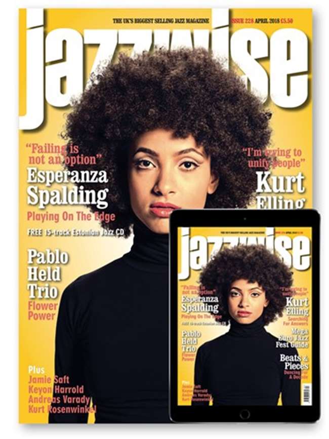 The April issue of Jazzwise, the UK’s biggest selling jazz monthly, hits the streets on 15 March with a striking cover featuring multi-Grammy Award winning bassist and singer Esperanza Spalding. She discusses her daring and groundbreaking Exposure project, which saw her record an entire album in three days while streaming the whole session live on Facebook to a global audience.