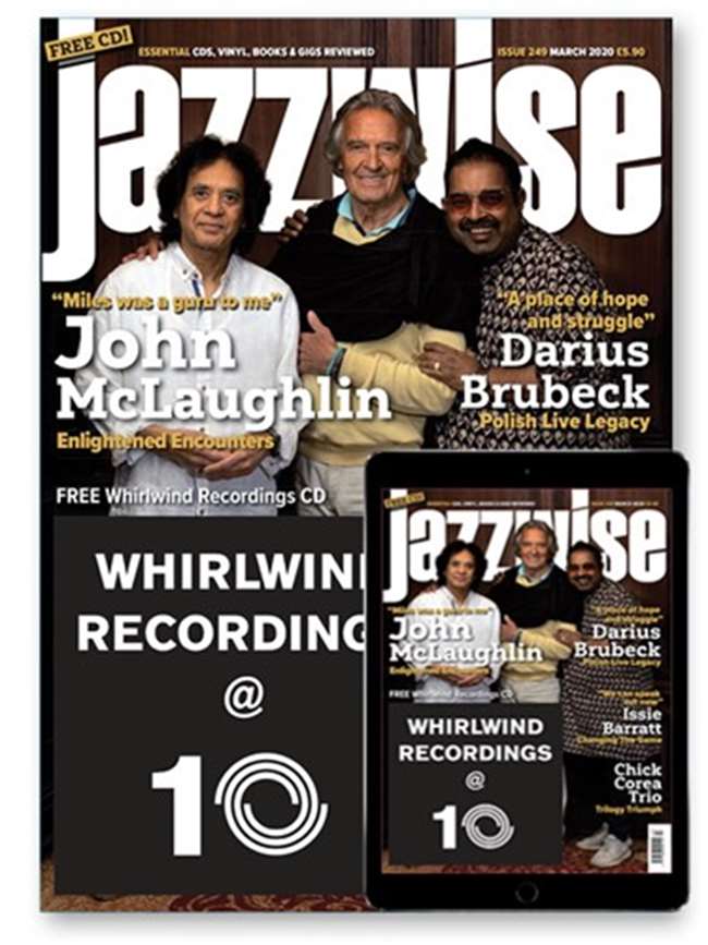 The March issue of Jazzwise magazine is out now with an exclusive cover feature on guitar giant John McLaughlin’s new Indo-jazz project and also includes a fantastic FREE 17-track album from the mighty Whirlwind Recordings label.